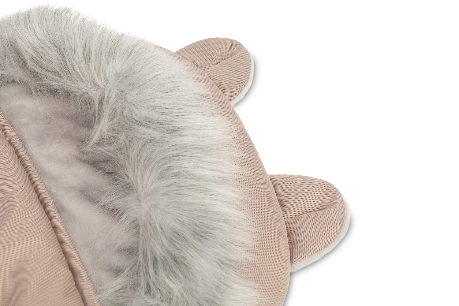 Åkpåse Sierra är perfekt för kallare dagar. Insidan är tillverkad av varm och mjuk fleece och ett tjockt fyllningslager skyddar mot kylan. Ytterlagret är tillverkat av vattentätt polyestertyg. Sierra är lämplig för sittbarnvagnar och pulkor. Den har hål för bälten och en dragkedja längs hela längden. För komfort är fuskpälsen på huvan avtagbar. Åkpåsens huva är dekorerad med söta björn öron.
