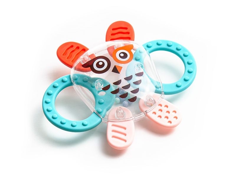 Pedagogisk skallra med bitring KOSMO är designad för de yngsta barnen. Produkten är tillverkad av säker material. Den har inga vassa kanter. BPA-fri (0 % BPA). Leksaken kombinerar fördelarna med både skallra och bitring. Den är lätt och praktisk, så att barnet lätt kan greppa den. Har mjuka tuggelement som lugnar ett barn som får tänder. När leksaken skakas ger den ifrån sig ett intressant skallrande ljud.