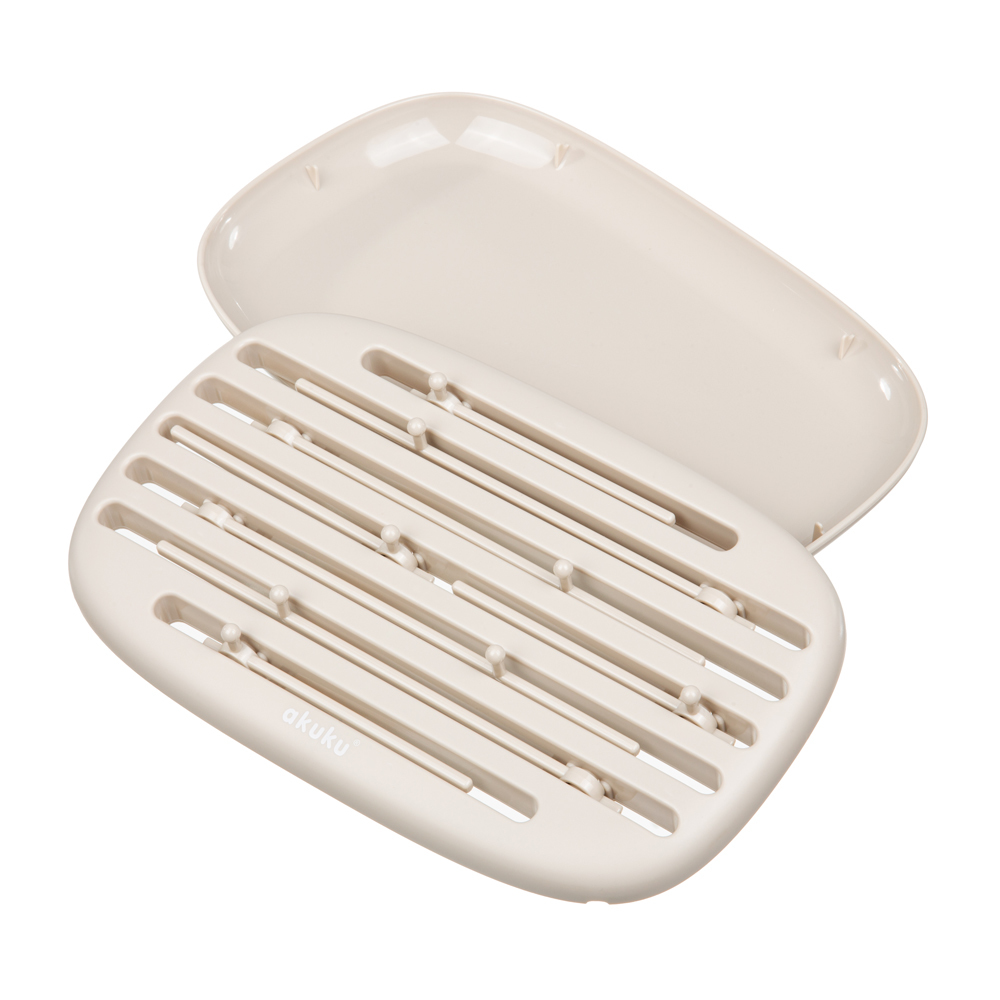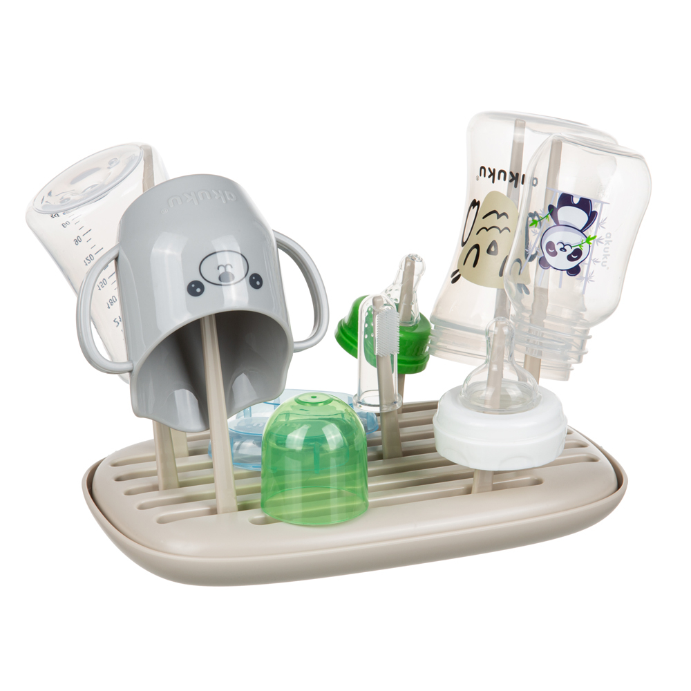 Detta mångsidiga torkställ för flaskor och tillbehör är perfekt för både hemmet och resor. Det är funktionellt, passar alla typer av flaskor och är lätt att fälla ihop och rengöra. Det är utformat för att enkelt samla upp vatten och kan placeras var som helst.